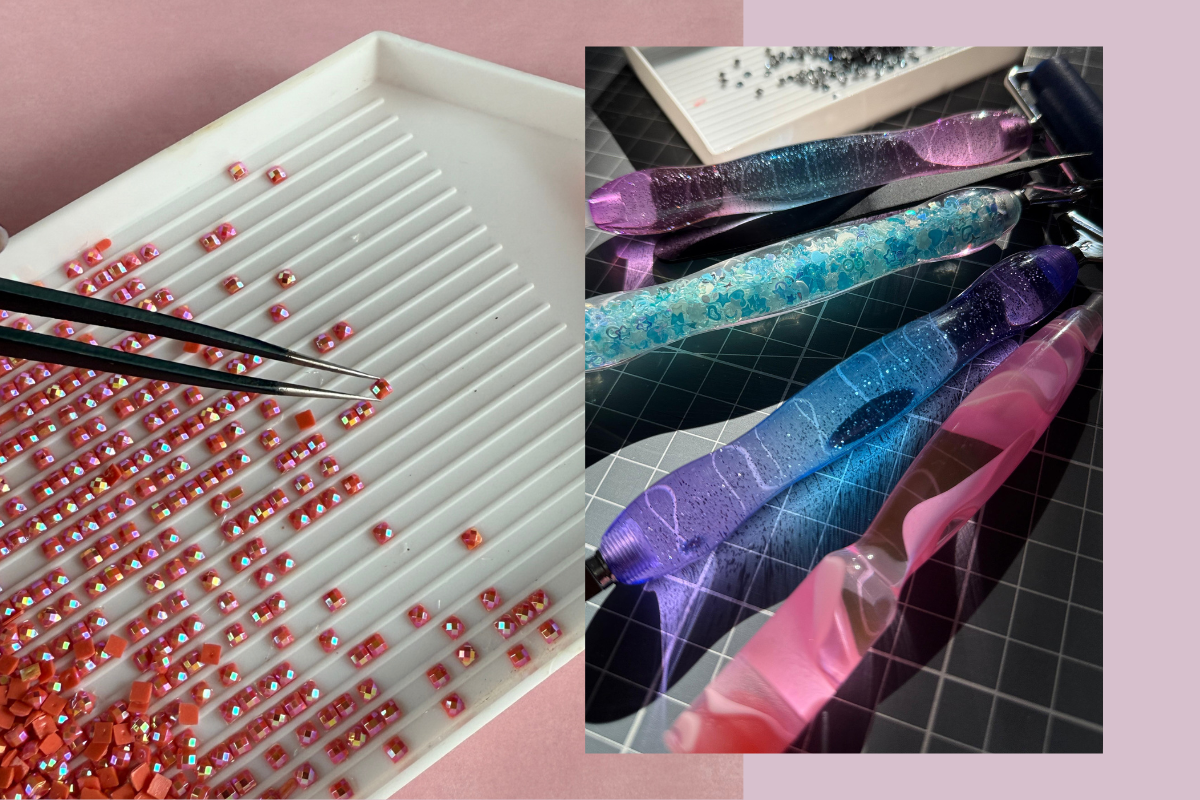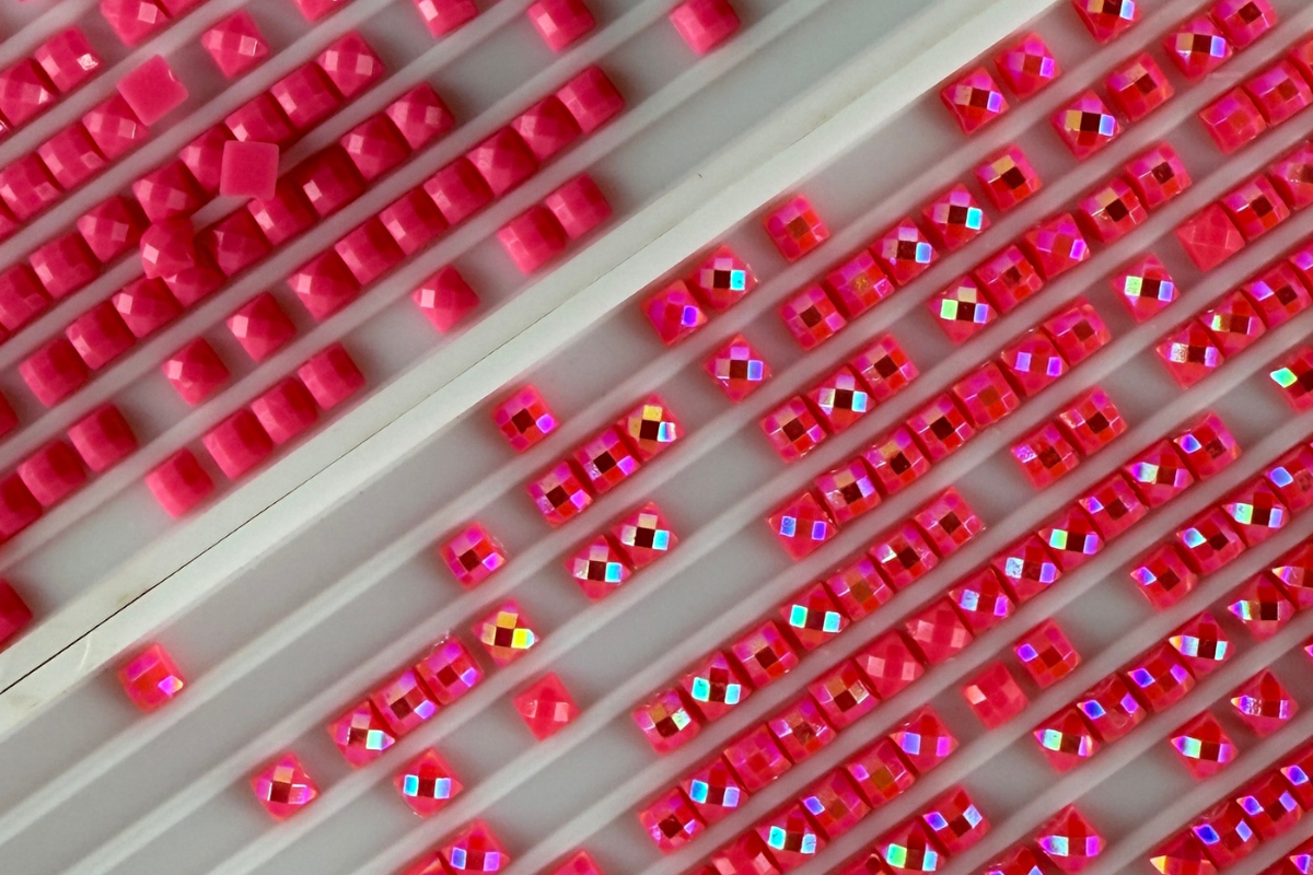 - Normale Acrylsteinchen = klare Basis, gleichmäßiges Motiv