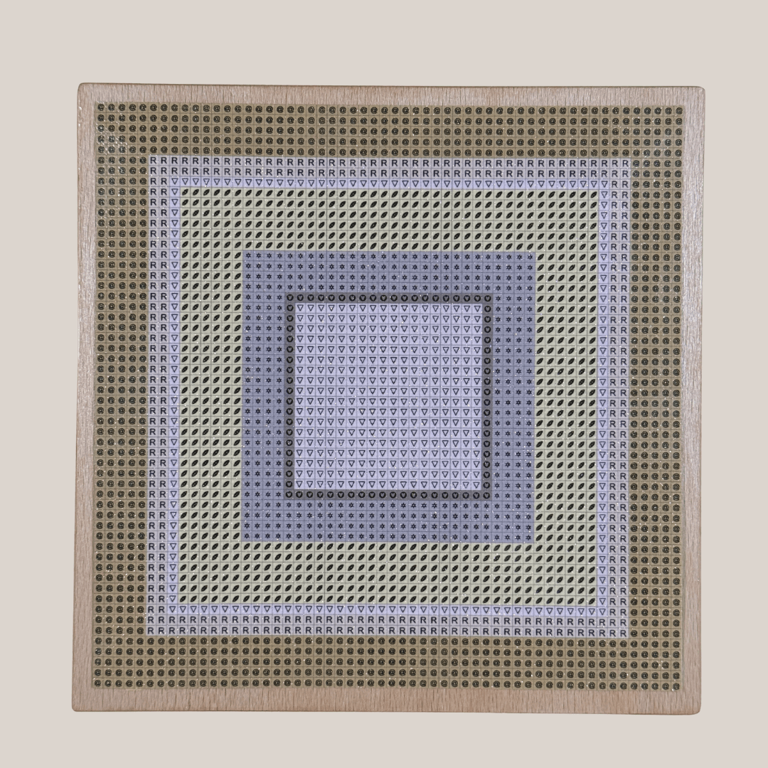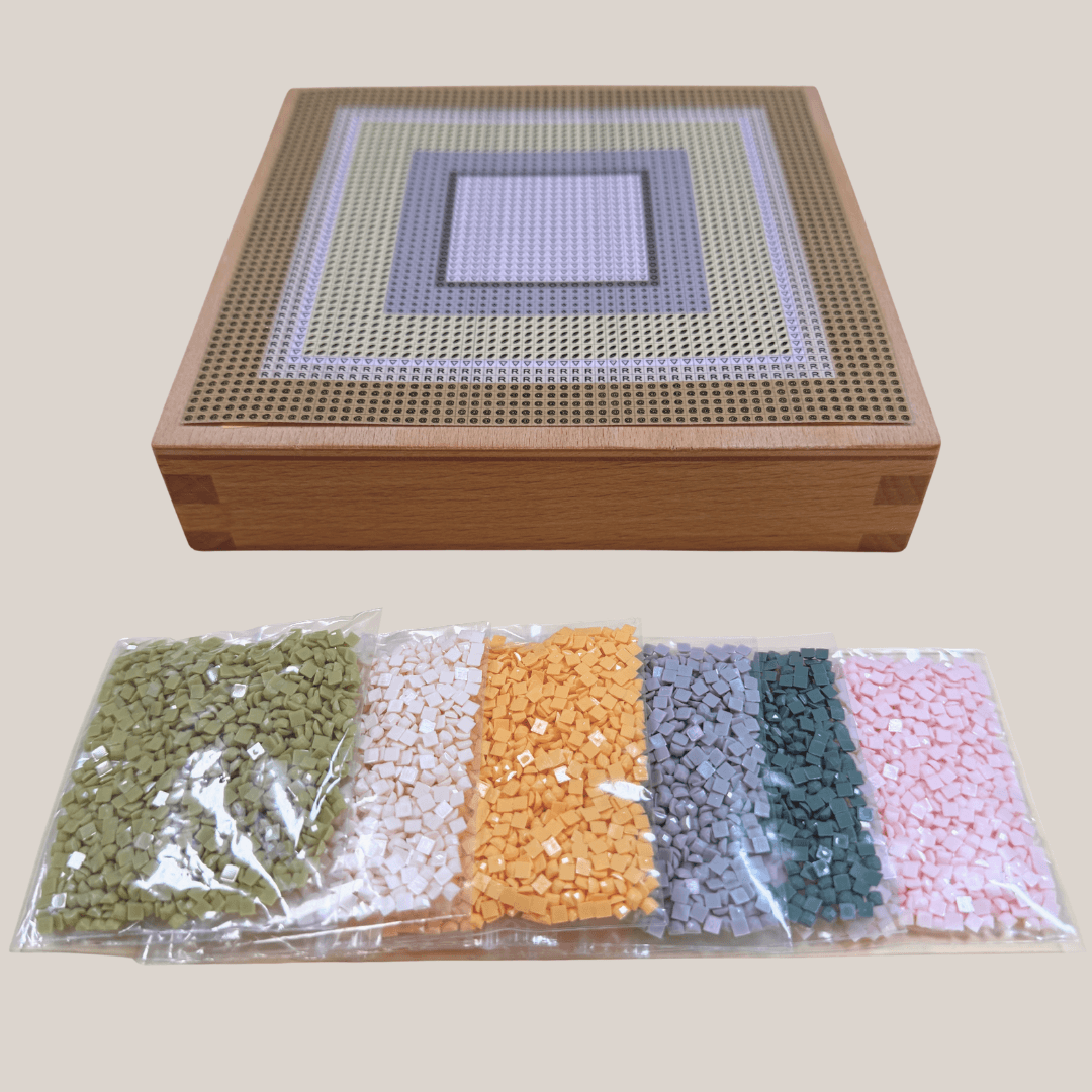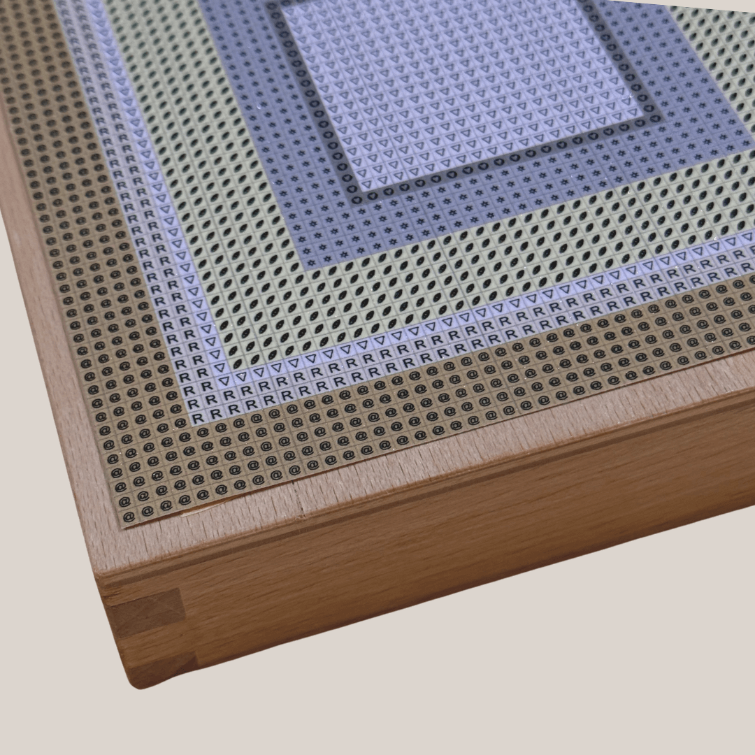 Dein Mini Metrics Duo wird sorgfältig für dich vorbereitet. Die Vorlage wird vorab präzise auf einen hochwertigen Buchenholzkörper aufgebracht, sodass du nach Erhalt direkt mit dem Setzen der Steinchen starten kannst.