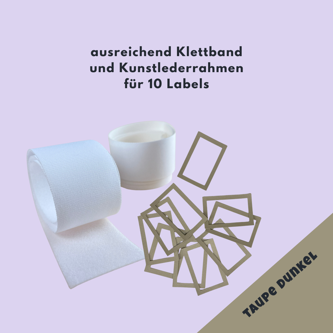 - Klettband-Set 60 cm – Haken 3,75 cm (selbstklebend, Tape vormontiert) + Flausch 5 cm – reicht für 10 Labels