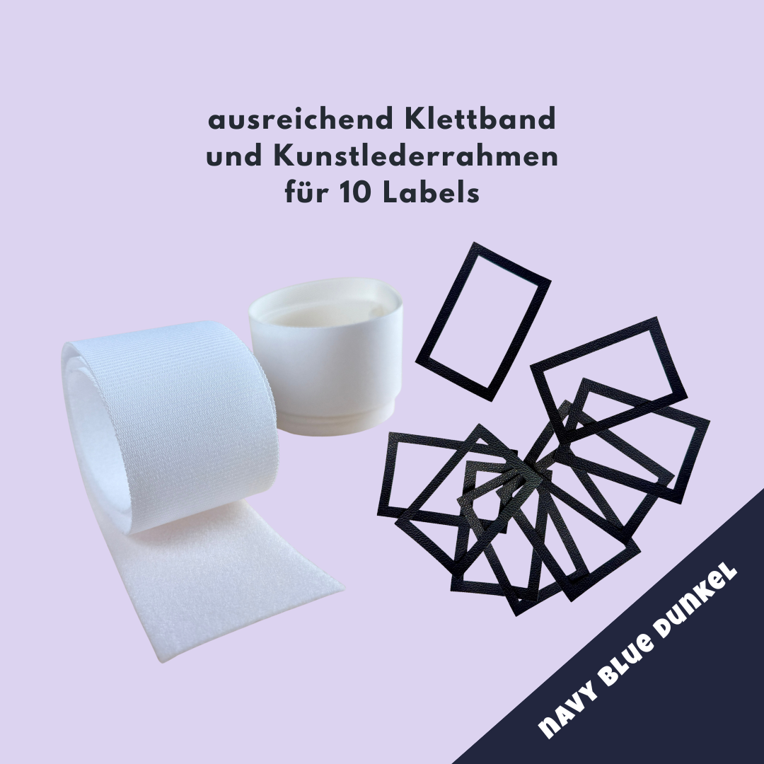 - Klettband-Set 60 cm – Haken 3,75 cm (selbstklebend, Tape vormontiert) + Flausch 5 cm – reicht für 10 Labels