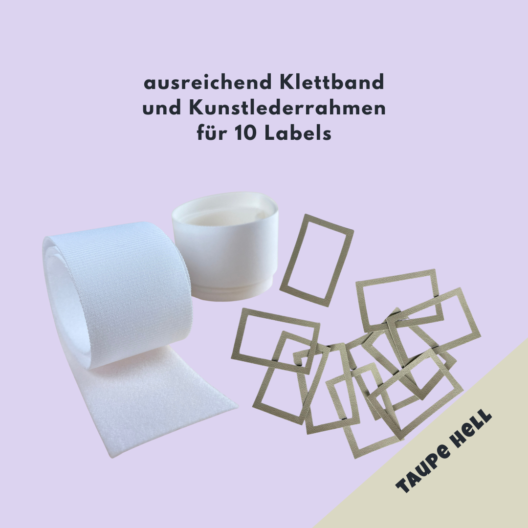 - Klettband-Set 60 cm – Haken 3,75 cm (selbstklebend, Tape vormontiert) + Flausch 5 cm – reicht für 10 Labels