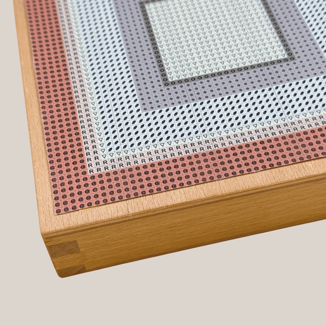 Dein Mini Metrics Duo wird sorgfältig für dich vorbereitet. Die Vorlage wird vorab präzise auf einen hochwertigen Buchenholzkörper aufgebracht, sodass du nach Erhalt direkt mit dem Setzen der Steinchen starten kannst.