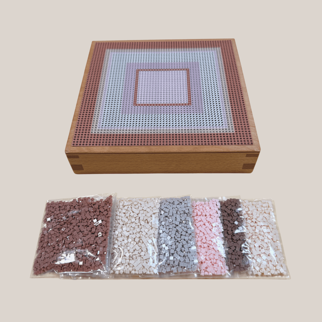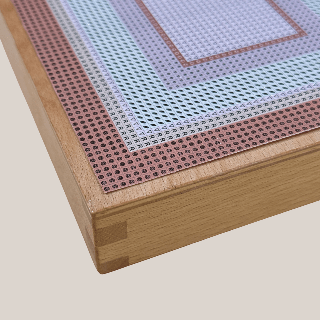 Dein Mini Metrics Duo wird sorgfältig für dich vorbereitet. Die Vorlage wird vorab präzise auf einen hochwertigen Buchenholzkörper aufgebracht, sodass du nach Erhalt direkt mit dem Setzen der Steinchen starten kannst.