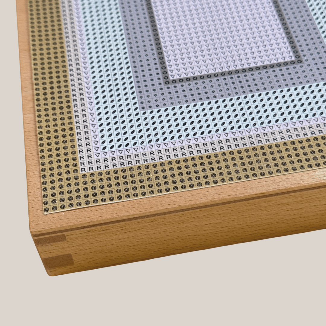 Dein Mini Metrics Duo wird sorgfältig für dich vorbereitet. Die Vorlage wird vorab präzise auf einen hochwertigen Buchenholzkörper aufgebracht, sodass du nach Erhalt direkt mit dem Setzen der Steinchen starten kannst.