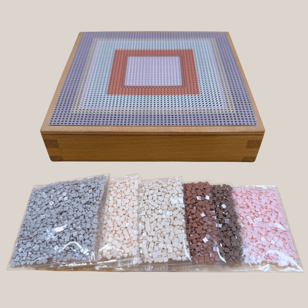 Dein Mini Metrics Duo wird sorgfältig für dich vorbereitet. Die Vorlage wird vorab präzise auf einen hochwertigen Buchenholzkörper aufgebracht, sodass du nach Erhalt direkt mit dem Setzen der Steinchen starten kannst.