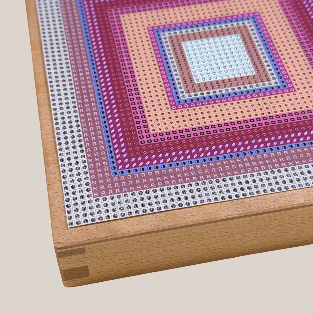 Dein Mini Metrics Duo wird sorgfältig für dich vorbereitet. Die Vorlage wird vorab präzise auf einen hochwertigen Buchenholzkörper aufgebracht, sodass du nach Erhalt direkt mit dem Setzen der Steinchen starten kannst.