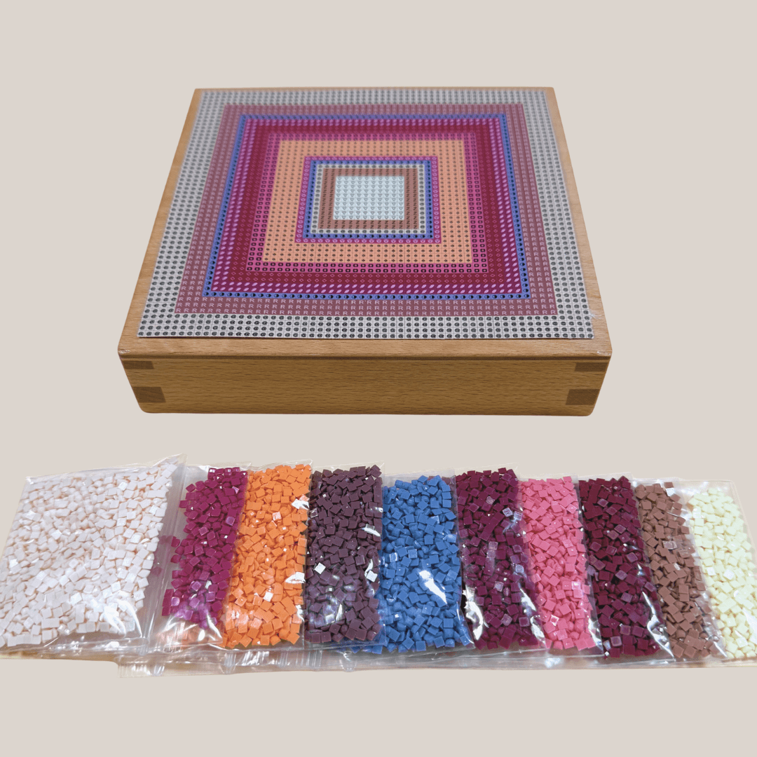 Die Mini Metrics Art Edition verbindet grafische Klarheit mit feiner Micromosaic-Struktur. Das Motiv ist bewusst reduziert gestaltet und entfaltet durch die gesetzten Steinchen eine besondere Tiefe und ruhige Spannung.