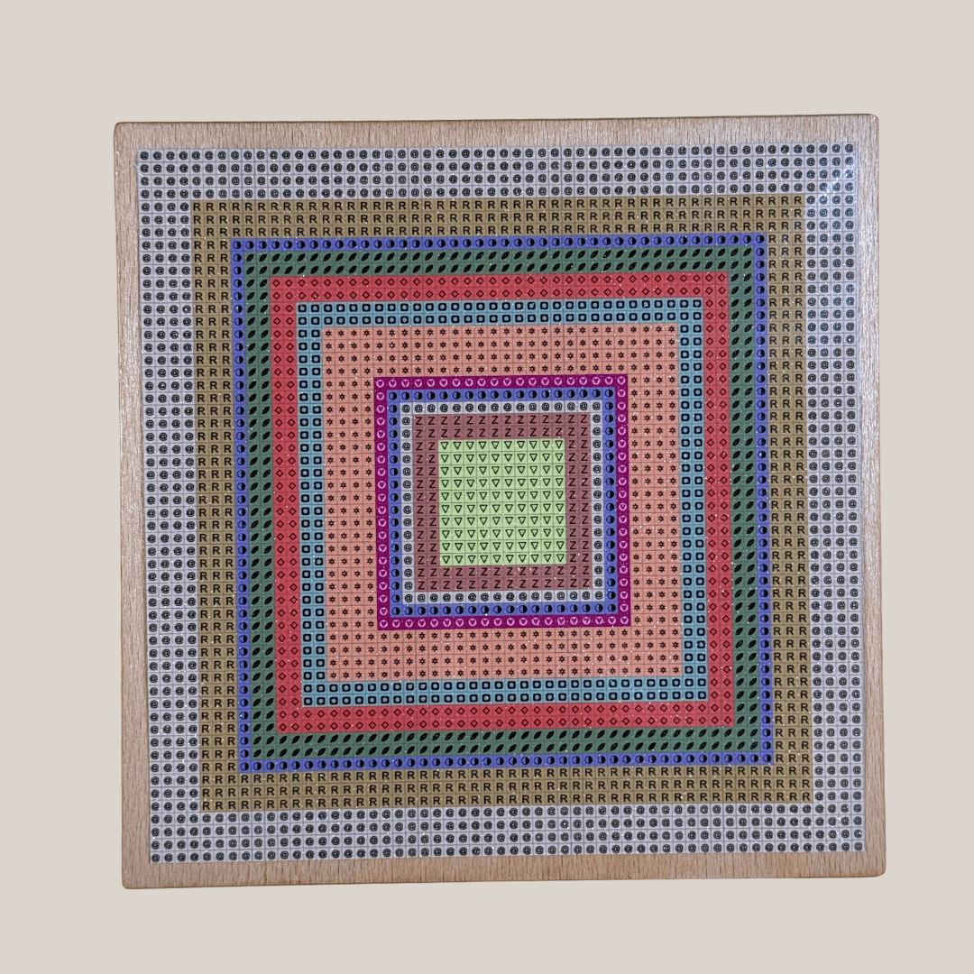 • Mini Metrics Art Edition – fertig appliziert auf hochwertigem Buchenholzkörper (15 × 15 × 3 cm)