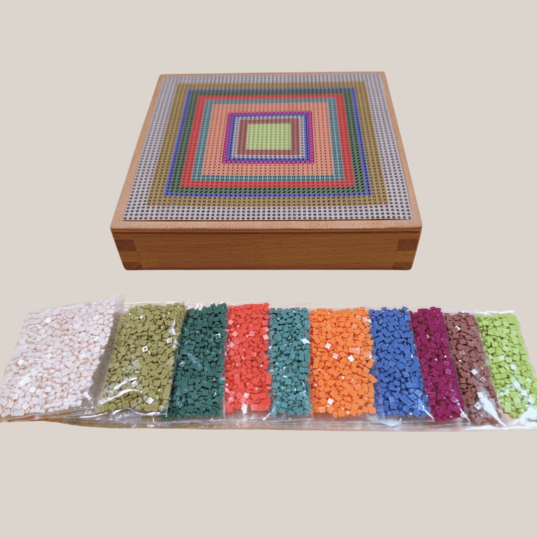 Die Mini Metrics Art Edition verbindet grafische Klarheit mit feiner Micromosaic-Struktur. Das Motiv ist bewusst reduziert gestaltet und entfaltet durch die gesetzten Steinchen eine besondere Tiefe und ruhige Spannung.